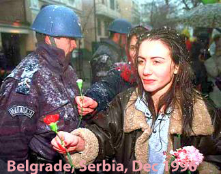 personal gain and profit. Only callous thugs do that. And the "new world order" they dreamed up is nothing new. Hitler also called the Third Reich a New World Order. And look where it got him. So perhaps a more appropriate term for the terms would be to call these selfish, greedy, bloodthirsty globalists - the Dark Cabal, the Riders of the Apocalypse. For, they stand for Conquest, War, Famine and Death. And like the Four Riders of the Apocalypse, are impervious to human or natural suffering they cause in pursuit of their quest for power. As President Eisenhower once said, "I think we've flogged this horse (Dark Cabal) enough. Let's get a new one." Let's. As for those brutal police officers, it might be helpful for us to consider that they are just wage earners with families like those of the people they are beating up. They are not the problem. Nor are the soldiers the Dark Cabal send around the world to kill and subjugate. Their bosses are, both the politicians and the bankers/corporate tycoons for whom the politicians do their dirty work. The way to fight this battle as peaceful warriors is to try to win the hearts of the police and the soldiers. Let us show them that the people they are clubbing are their friends and neighbors, and the people who are paying them to do it are thugs and thus the common enemy. As these young Belgrade (Serbia) women did in 1996, when facing a column of heavily armed Slobodan Milosevic's police. Bob Altzar Djurdjevic is a writer, musician, video maker, thrice-ordained Inca-shaman and business consultant based in Maui, Hawaii (see altzar.org and yinyangbob.com). He founded Stewards of the Earth (gaiasteward.org) internet community in Jan 2012 to help heal our planet and humanity and guide it through the shift into the new Era of Aquarius. The Stewards of the Earth are now active across the U.S. and on all six major continents. --- Also see these videos... Anti-austerity protests turn violent across Europe