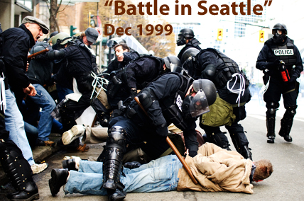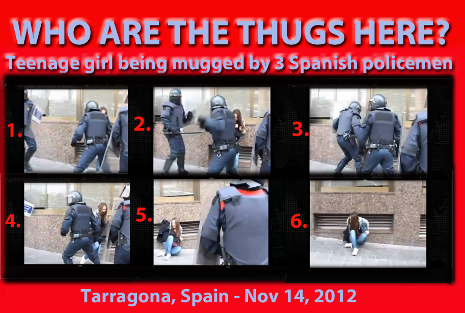 Police resort to violence because they are paid to. And because they can. Wantonly. It's a power trip for some. Like this Spanish threesome of thugs with government-issue guns, clubs and helmets caught on camera in the act mugging kids (also see this London Telegraph story about it). Beating up teenagers who were clearly innocent bystanders is not a sign of desperation. It is a sign of degeneration - of human spirit. That is the level be Scenes of wanton police brutality have become commonplace in many other places around the world where and when the so-called "New World Order" (NWO) "elite" gather to plot their next steps in subjugation and exploitation of the people of the world and of Mother Earth. The latest one was in Toronto, Canada in June 2010 (see ). So what's going on? The so-called global "elite" are getting desperate. Their methods are no longer working. Police brutality and violence are signs of WEAKNESS. They are merely symptoms of the "elite's" desperation. Take Greece, for example, where the Euro financial crisis started. This EU country has received so far about €150 billion in EU bailouts in exchange for making tough budget cuts and sweeping reforms to its labor market and bureaucracy. And what's the outcome a year later? Things are worse than ever. Government deficit has almost doubled. Unemployment is 25%. It is about 50% among the young people. Clearly, the cure is worse than the disease. Is there any wonder the Greek people are protesting? And now, much of southern Europe is in flames, too. Greece has now been also joined by Spain, Portugal, Italy... each of which is suffering high unemployment, big budget deficits and demands for even deeper cuts in exchange from any bailout funds from the central EU bureaucracy. And then check out this photo gallery of protests against the central bankers and their European national government stooges. In other words, the much ballyhooed "euro," the globalists' pride and joy of the 1990s, has turned into a dismal failure. No surprise there. Here's a quote from a column I wrote in 1998 for the CHRONICLES magazine in Chicago. Keep in mind that this was four years BEFORE the "euro" became a reality. Here was my bottom-line conclusion: