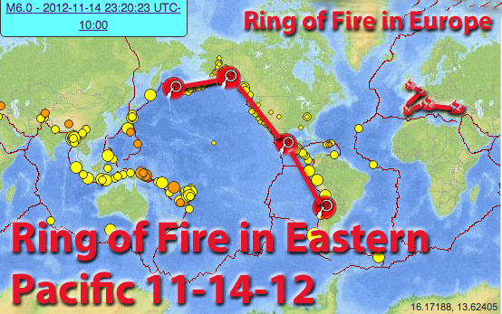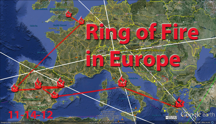 --- Ring of Fire in Europe Echoed by Ring of Fire in Pacific Man and Nature in sync: Power of collective emotion moves Mother Earth into action; "The Swan" was actually an oracle as an "euro" and EU "swan song"