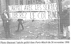 veterans would have none of it. "The Army Backs the Serbs. Meanwhile, the Italian news agency, ANSA, reported on Nov. 9 that Osama bin Laden, the Saudi Arabian fugitive, who has been accused by the U.S. government of financing and masterminding the recent bombing of the American embassy in Nairobi, Kenya, is planning to send 300 of his Islamic mercenaries to reinforce the (predominantly Muslim) Albanian separatist-terrorists in Kosovo. So get this: On the one hand, the U.S. government accuses this Arab sheik of being a terrorist, on the other hand the Clinton administration backs the same Albanian terrorists as bin Laden. Just as they did in 1994, when they winked at Iran, America's sworn enemy, secretly shipping weapons to the Bosnian Muslims. And you wonder why the Europeans are upset? Actually, one should wonder why more "average Americans" aren't more upset about it, either. But, of course, there is an answer to all this. And it's not the "average American's" fault. The answer lies in the "dumbing down of America." The NWO globalist elite, having claimed a monopoly on the U.S. foreign policy, evidently deem such information - read contradictions- to be "too complex" for an average American to grasp. As did the Soviet censors when it came to telling the truth to the Russian people. So what does the U.S. foreign affairs establishment do? They just don't report the bin Laden Kosovo connection to us. Nor any other which doesn't fit their opinions or business interests, such as last weekend's cold-bloodied murder by Albanian terrorists of two Serbian policemen in Kosovo, one of them a 23-year old reservist (check out our recent letters to the New York Times, the Wall Street Journal and the Washington Post about it - available at our Web site). Is there any wonder that the E.U., the "euro," the NATO expansion, and other globalist designs for (how to destroy) Europe are all proceeding full steam ahead notwithstanding the fact than 54% of the E.U. citizens are AGAINST it, according to a poll by the London-based Henley Center? (see WSJ, 10/19/98). Is there any wonder then, that 62% of Americans did not bother to vote in the Nov. 3 elections, feeling disenfranchised by the Wall Street-Washington "ruling class?" The last time around a situation like that occurred, our Founding Fathers characterized it "taxation without representation." And we all know what followed... Liberty, of course! Also, check out... "NATO: New Iron Curtain Upon Europe," "The Coming EU-US Clash?", "Northern Ireland: A War of the Hooligans", "U.S. European Policy Destroying Own Creations", "Austrian Men Do Dishes; Shakespeare Condemned in Arizona", "US Senate Picks Up the NATO Hot Potato", "Russia Is Still the Bogey No. 1" Or Djurdjevic's CHRONICLES and WASHINGTON TIMES columns: "A Bear in Sheep's Clothing", and "Rekindling NATO to Fuel Cold War..." |
