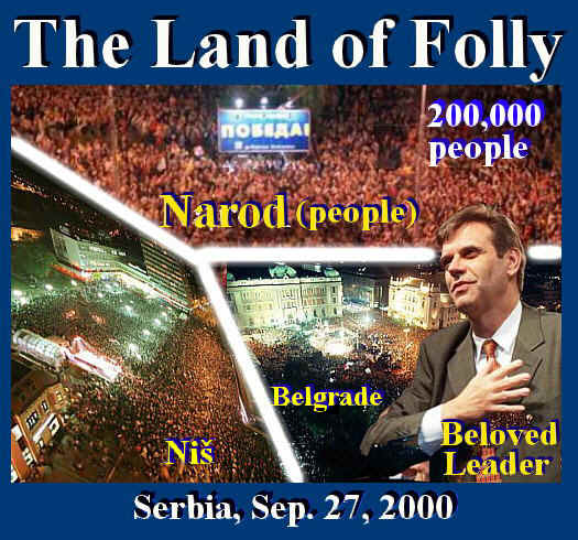 Yugoslavia indicted by the Tribunal.” That’s the kind of Serbia for which the Serb ostriches who voted for Kostunica will get, a country dismembered, enslaved and lying prostate before the gloating New World Order conquerors. Given the number of such “democratic” fools in Serbia, as our Belgrade TiM reader said (see Item 1), “I'm not sure we deserve to survive” as a free people. ------------ 6.