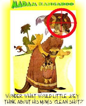 People of Oz… Legally! PHOENIX, Aug. 21 - Remember the 1970s movie, “They Shoot Horses, Don’t They?” Well, it’s showing again. In Australia. Not as a flick, though. And they don’t shoot horses, either. So “They Shoot Roos, Don’t They?” Regrettably, they do. As they did it a few weeks ago, in a Western Australian neighborhood that this writer knows very well. As they kill these beautiful animals, these New World Order types call it “culling.” Or “population control.” It’s all “for the better,” patsies among the Oz citizens are told. Just like a deliberate burning of beautiful forests (by “CALM” - Conservation and Land Management) can you believe the perfidious, “New World Order” name they use in WA for an outfit whose job is to burn things down? Maybe Klinton can import some of these officials into the U.S.? Provided their faces are first blackened by their CALM actions, of course. So as to get them passed our racist immigration laws. No chance in Montana, though. They’ve seen too liberal many faces blackened by fraud, and too many forests worth saving - just blackened. One has to wonder… How can killing God’s creatures,