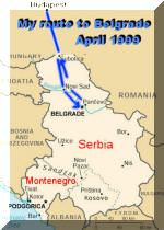 -------------------- 1. Saying Goodbye to Family PHOENIX, NEW YORK, Apr. 14, 1999 - When the war started three weeks ago, I was ready to travel to Serbia so as to demonstrate my solidarity with the Serbian people by a physical presence there. But my Belgrade friends, such as the Radio Belgrade editor Dusan Markovic, talked me out of it. They felt that I can make a greater contribution by reporting on the war from the U.S. First, because I would have access to more information sources; second because the telecommunication lines are better and faster. And so I did, working 16-18 hours every day, spewing out one or two TiM Bulletins every day. My friends were right. Within a couple of weeks, the Truth in Media web site was bombarded by visitors' hits as Serbia was being raked over by NATO bombs. The TiM site was ranked #33 in the world out of some 40 million web sites in existence at the time. The Truth in Media was helping break the chokehold on the "truth" that the establishment media were feeding the American people. That's when I felt I could take some time off to go to Serbia and give my reports even more credibility through eyewitness accounts of the war scenes. I consulted again with my family and friends before making the final decision. My Belgrade friends were still against it, but said they would help me if I insisted on coming there. The Yugoslav ambassador to the United Nations, Vladislav Jovanovic, welcomed the idea. He said he would help me get the visa in Budapest if I decided to go. My younger daughter, Emily, then a junior in college, broke down in tears on the phone. "You're my only Dad," was all she could think of saying. But my elder daughter, Tanja Anne, then working as an investment banker for JP Morgan on Wall Street, thought I should go. She had been taking time off work to attend all the anti-war rallies in New York and on weekends traveled to Washington, too. She was also helping me with news clips from the various wire services that she had access to at JP Morgan. My ex-wife, who used to acquiesce to everything I did, well... also acquiesced to my going to Serbia as well. And so I decided to go. While waiting to board my flight to Budapest at the JFK airport in New York, I was stunned to see my elder daughter in the lounge. She had taken the afternoon off work to come and say goodbye to me and wish me good luck. We only had a few minutes to talk before I had to board the flight. But her presence there spoke more to me than any words could have said. Once in Budapest, I took a taxi straight to the Yugoslav embassy where they were waiting for me. I met briefly with the ambassador whom the Yugoslav UN ambassador had alerted about my plans. While we were chatting, his staff stamped a visa into my passport. It was all very irregular. Normally getting a visa is quite an involved procedure for an American, and in wartime, it's practically unheard of. Well, my stay at the embassy took less than half an hour. 2. Game of Chicken on the Danube Bridge Then I was back at the airport, where I was to pick up a mini-van ground