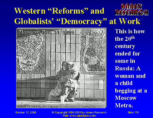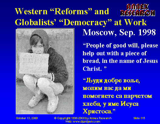Well, one year later, these pro-western NWO vassals did ascend to power.  And now, thanks to the statistics just released in London by the European Children’s Trust, the Serb people can see what kind of “prosperity” awaits them in the NWO “democracy” - the kind that they’ve already experienced under the sanctions, of course.