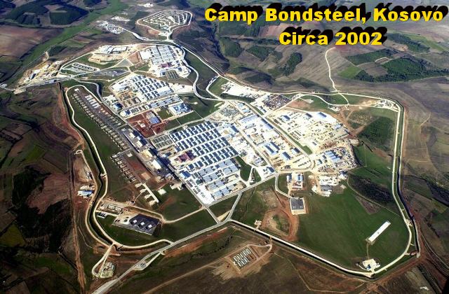 Camp Bondsteel is located close to vital oil pipelines and energy corridors presently under construction, such as the US sponsored Trans-Balkan oil pipeline. As a result, defence contractors. such as Dick Cheney's former employer, Halliburton, are making a fortune there. In June 1999, in the immediate aftermath of the bombing of Yugoslavia, US forces seized 1,000 acres of farmland in southeast Kosovo at Urosevac, near the Macedonian border, and began the construction of the cam that housed nearly 7,000 troops (as of 2002), three quarters of all the US troops stationed in Kosovo. There are 25 kilometres of roads and over 300 buildings at Camp Bondsteel, surrounded by 14 kilometres of earth and concrete barriers, 84 kilometres of concertina wire and 11 watch towers. The camp is so big that it has downtown, midtown and uptown districts, retail outlets, 24-hour sports halls, a chapel, library and the best-equipped hospital anywhere in Europe. And now, considering all of the above, was there any doubt as to what Washington's intentions in Kosovo were right from the outset? To wrest the cradle of the Serbian civilization from that small country, of course, and to give it to Albanians and the U.S. oil and other multinational companies for exploitation and enjoyment (see "BLOOD FOR OIL, DRUGS FOR ARMS," New Dawn Magazine, Apr 2000).