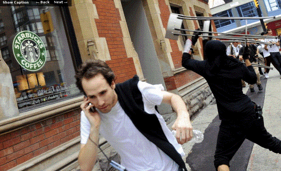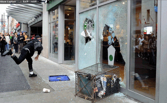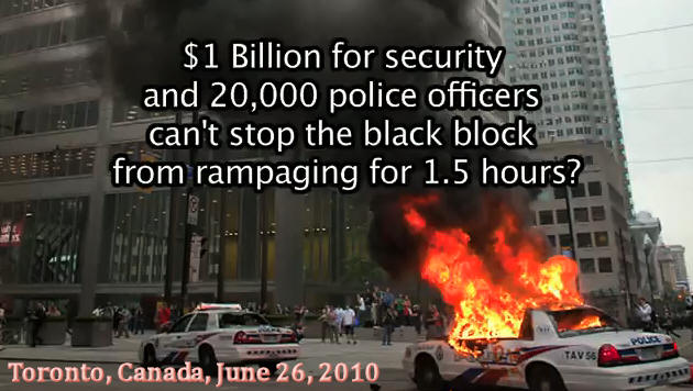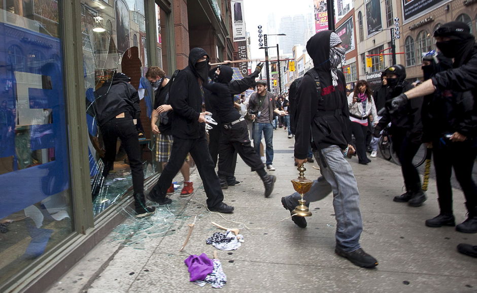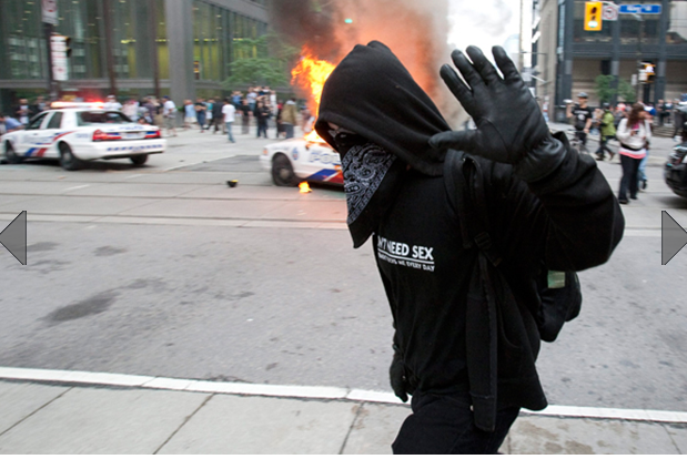 the black-hooded goons do their dirty work in the streets of Toronto came