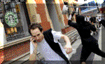 a Starbucks store in which the perpetrator seems to be wearing boots and