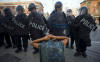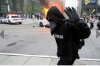 menacing-looking black-helmeted riot police handled some other peaceful