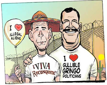 Isn't American politics like magic? On the second thought, strike the word "like." Nothing new there, I am afraid. Check out my 1996 Washington Times column, "American Demofarce" (Nov 1996). Undaunted by the 9/11 delay, thre A few days after his proposal, Bush met with Fox in Monterrey, Mexico, for a Special Summit of the Americas. Not surprisingly, the Mexican president welcomed the Bush proposal as a very important step forward. On January 20, 2004, President Bush called for passage of his immigration reform proposal in the State of the Union address. So the IBD editorial is wrong when it tries to make the travesty of what's happening on our southern border a partisan issue, painting Democrats as the black hats while depicting Republicans as the white-hatted friends of the American people. Bill Clinton, George H. Bush were also toeing the same "money ueber alles"-line. And President Reagan was the first to propose a North American common market in 1981. In Nov 1987, he and Mexico's president Salinas signed a "framework agreement," a stepping stone to NAFTA (North American Free Trade Agreement), ratified under Clinton in 1993. In short, all these "blue" and "red" American presidents collectively bear the responsibility for what's happening today in Arizona and elsewhere along our southern border. The Republicans and the media who are now trying to blame Obama for the intolerable illegal immigration situation are obviously counting on short memories of American voters. Here's what the IBD editorial says about that kind of political opportunism: