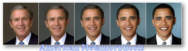 When terrorists struck on 9/11, this writer was actually working on an editorial titled "Who Is America's New President?", showing a photo of Fox. For, the Mexican president was dictating Bush's immigration agenda. The editorial died on the vine, overshadowed by more pressing events. The American people were saved from that Republican betrayal only by a greater tragedy that diverted everyone's attention to Islamic terrorists after 9/11. And now, Obama is merely picking up from where Bush left off. No surprise there. This writer created the photo cartoon on the right in early 2009, shortly after Obama took over - much to the chagrin of his many "liberal" friends who had held high hopes for real reforms under the new president. A more artistic version of the same idea is shown below.