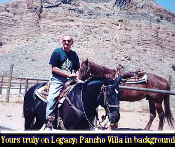 Mexican revolutionary?” “Yep. The horse is Mexican-bred.” “And what kind of a horse is mine?” “Legacy is a quarter horse. We got him from Tennessee.” “From Tennessee?” “Yep.” “That’s a long way from here. How did you hear out about him?” “Through the Internet,” this scruffy-looking cowboy replied, realizing the paradox of what he had just said, and snickering about it at the same time. “Well, why not?” I said. “If you can buy a car through the Internet, and you can these days, why not a horse?” As if on cue, someone’s cell phone rang