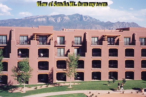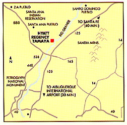 say this is Santa Fe?" (in hotel "They lied!" Jacquie said, with emphasis on "lied." "I know," I said. "I almost missed the resort and drove right past it to Santa Fe. Luckily I checked my map before Albuquerque." (The Tamaya resort is 30 minutes from the Albuquerque airport, and 45 minutes from Santa Fe, according to Jacquie). Small