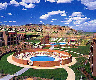 PHOENIX-SANTA FE, May 31-June 1 - It’s Sunday morning. For most people, the weekend is not over yet. But mine is. And what a dandy it was… a 36-hour, 1,150-mile (1,840 km) whirlwind car trip in the company of two classy ladies - one British, one Canadian - capped by a 22-hour stay at a fabulous resort. It included an exciting horseback ride in which I left my Legacy behind and my Mark on Rio Grande. What more could a man want, huh? More sleep perhaps? Okay, but not for too long, please Lord… For, another gulp of life may be waiting just around the corner. J My S’Wonderful 36-hour weekend actually started last December in Serbia. Following a three-day stay at the Belgrade Hyatt, I got a notice in the mail that I had earned a free night at a participating Hyatt hotel. The offer was to expire May 31. “Great! I’ll plan a nice weekend somewhere,” I thought, never thinking that I’d end up doing it on the very last day of the offer. There are two nice Hyatt’s in the Phoenix area, of course. But who wants to spend a weekend “away from it all” in your back yard? So I considered San Francisco in February. That didn’t work out. Besides, spending weekends traipsing through airports, and exposing yourself to body-searches by Tom Ridge’s “homeland security” people on their repugnant blue-collar power trips, is not exactly my idea of “fun.” Then I looked for a resort to which I could drive. I found on the Internet something called Tamaya Golf & Spa Resort in Santa Fe, New Mexico. Bingo! I first tried to get away to my Tamaya “getaway weekend” in late April. But snow in Flagstaff caused me to cancel that trip at the last moment.