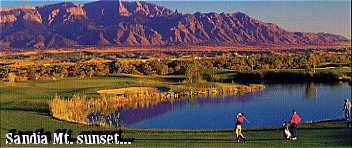 Surrounded by a golf course, with Sandia Mountain peak in the